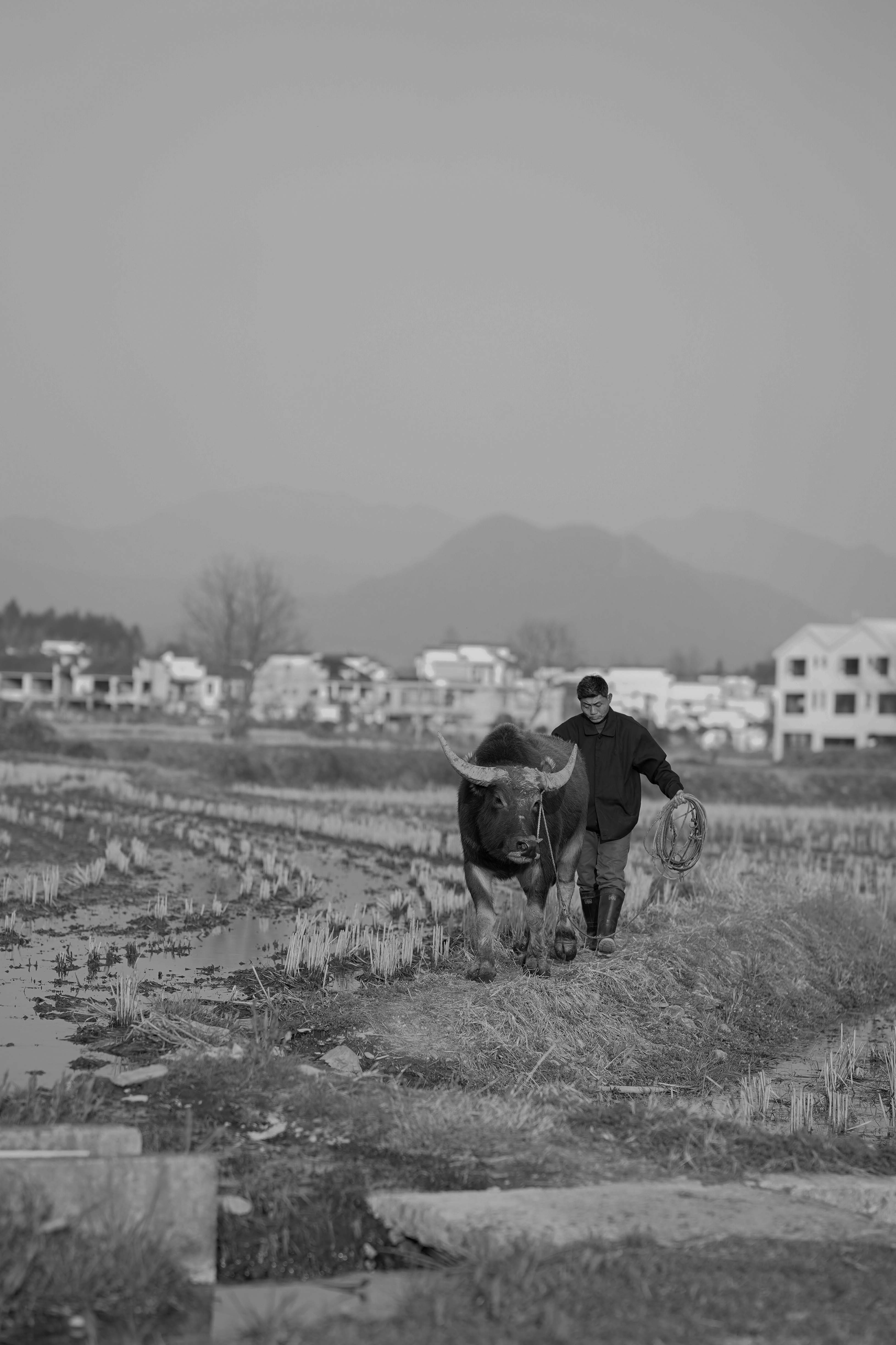 In the heart of Anhui Province, a man walks his water buffalo along a misty path, embodying a timeless connection between humanity and nature. The quiet rhythm of their journey reflects the deep traditions of rural China, where life moves at the pace of the land. This photograph captures a fleeting moment of peace, resilience, and harmony—an intimate glimpse into a way of life that has endured for centuries.